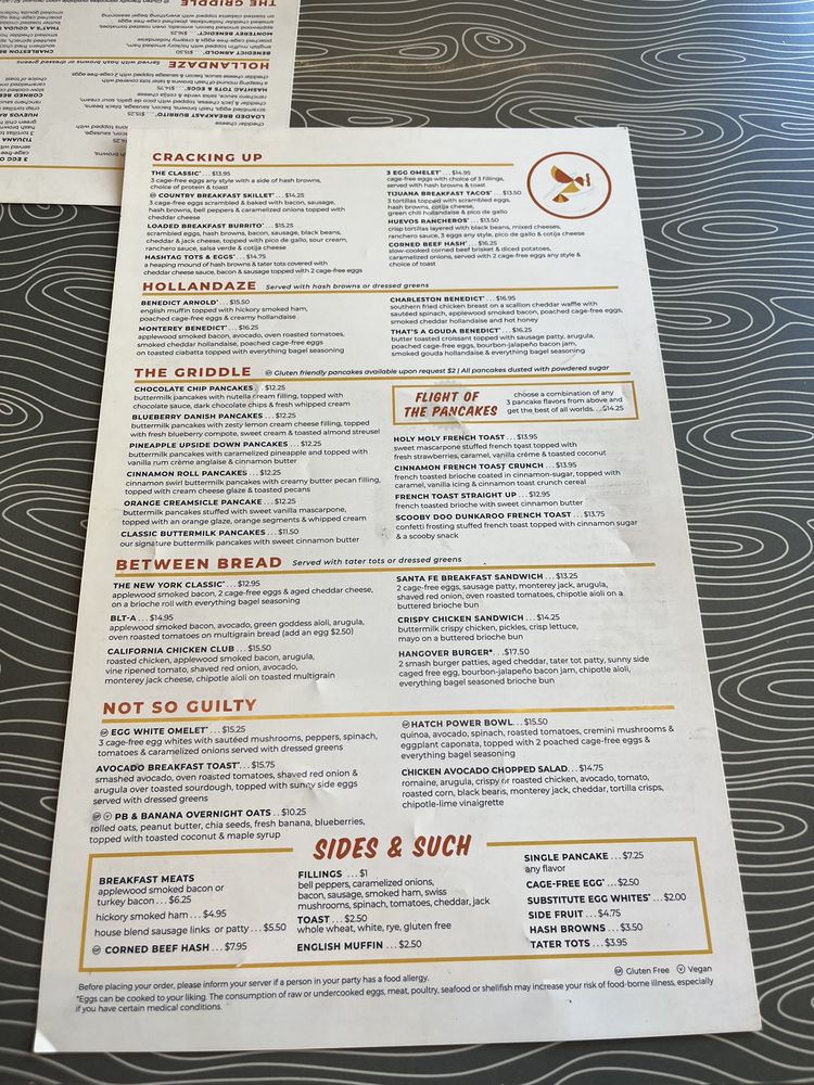 Located in Huntington, NY, Hatch is a trendy and classy breakfast and brunch spot offering a variety of options for all types of diners. From vegan options to hearty meat dishes, there is something for everyone. The menu features classics like omelets, corned beef hash, and country breakfast skillets. The sides menu includes favorites like applewood smoked bacon, hash browns, and tater tots. For those with a sweet tooth, the griddle section offers indulgent options like blueberry danish pancakes and chocolate chip pancakes. The restaurant also provides a range of utilities, including takeout, delivery, and catering options. Whether you're looking for a quick bite or a leisurely meal, Hatch has something to satisfy your cravings.